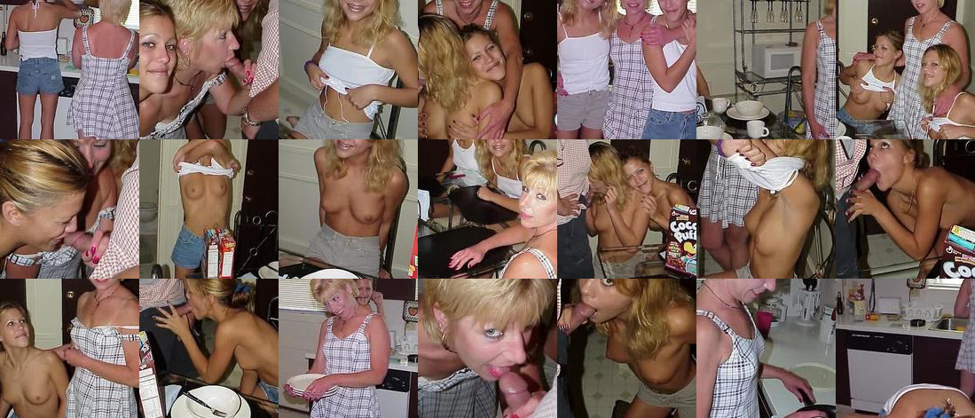 The daughters start playing with some friends during launch, they undress their t-shirts and gave a blowjob to one of their friends, the mother just coudn't resist to try it too and show how she doaes it.